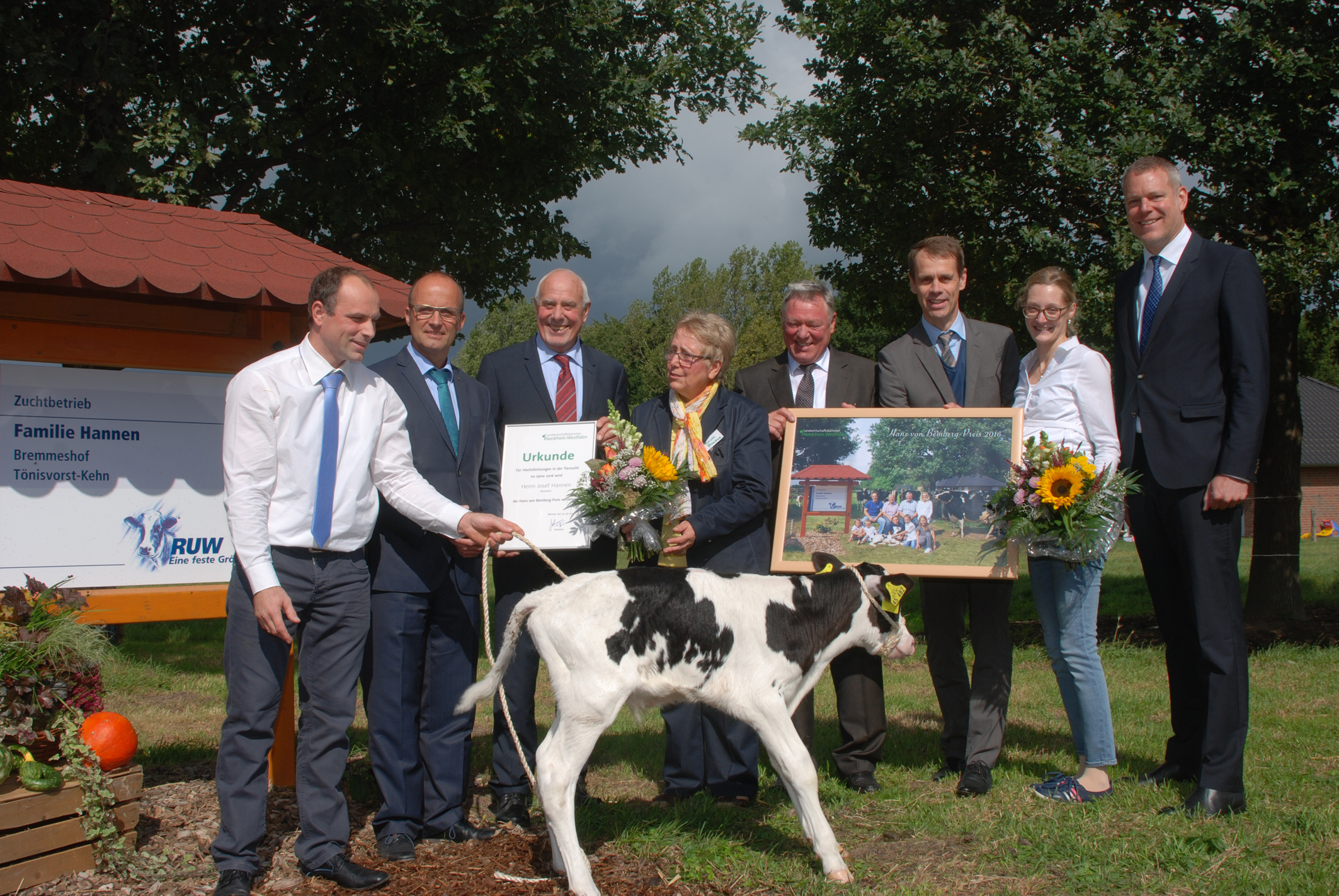 Mit dem Hans-von-Bemberg-Preis für die beste tierzüchterische Leistung des Jahres 2016 wurde Josef Hannen aus Tönisvorst im Kreis Viersen am 12. September ausgezeichnet. Wie der Präsident der Landwirtschaftskammer Nordrhein-Westfalen, Johannes Frizen, anlässlich der Preisverleihung mitteilte, ist es dem Preisgericht nicht schwer gefallen, die Zuchtstätte von Josef Hannen auszusuchen. "Der Betrieb in Tönisvorst ist aus Sicht des Preisgerichtes in jeder Hinsicht ein würdiger Preisträger", sagte Präsident Frizen.