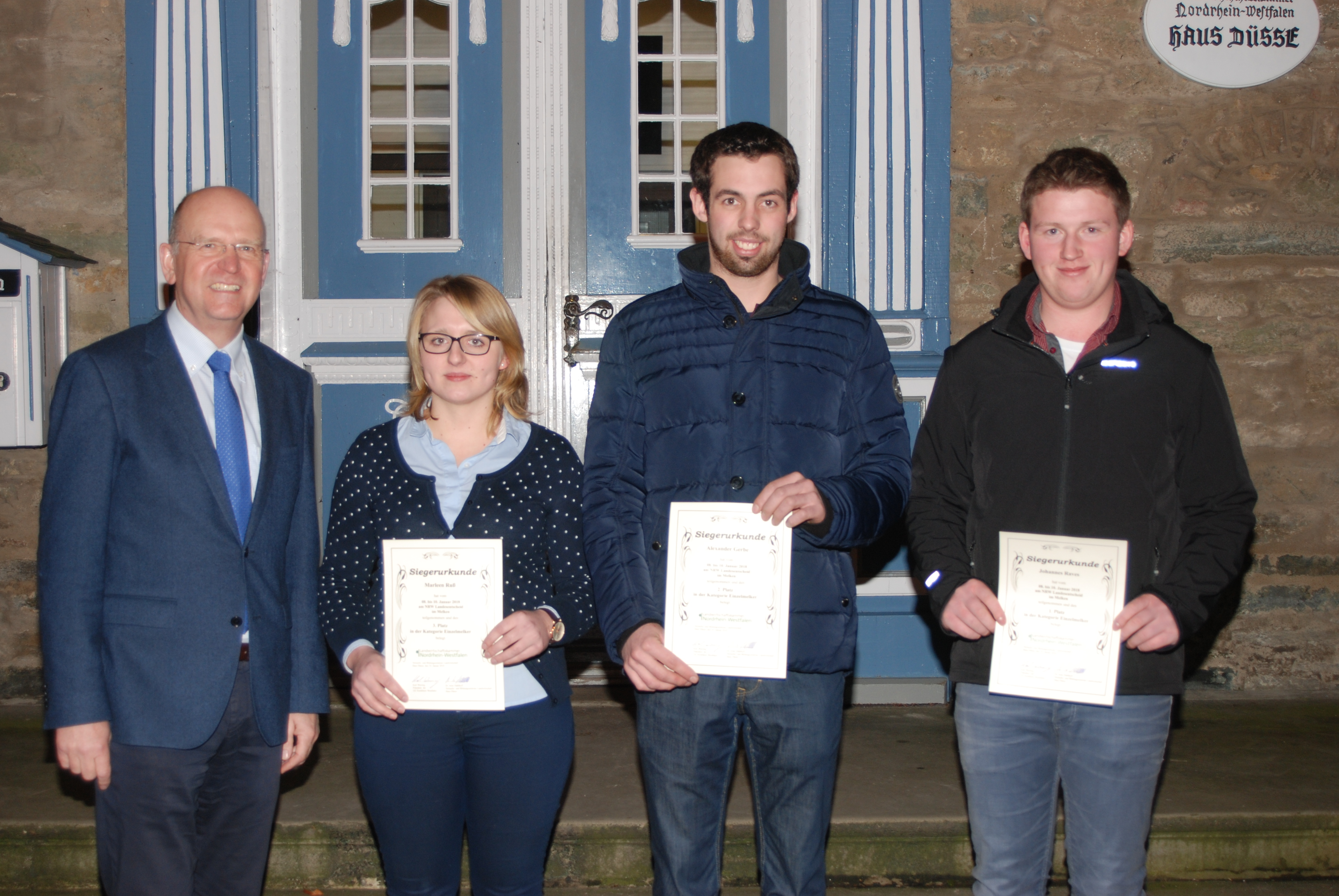 Der beste Melker Nordrhein-Westfalens kommt aus dem Kreis Kleve. Beim Landesentscheid im Melkwettbewerb der Landwirtschaftskammer Nordrhein-Westfalen im Versuchs- und Bildungszentrum Haus Düsse im Kreis Soest hat Johannes Raves (20) aus Issum-Sevelen gewonnen. Bei dem dreitägigen Wettmelken vom 8. bis 10. Januar belegte Alexander Gerbe (21) aus Schmallenberg im Hochsauerlandkreis den zweiten Platz vor Marleen Ruß (22) aus Emmerich. Alle drei werden das Land Nordrhein-Westfalen beim Bundesmelkwettbewerb der Deutschen Landwirtschafts-Gesellschaft vom 23. bis 26. April vertreten, der im Landwirtschaftlichen Bildungszentrum Echem in Niedersachsen stattfindet.