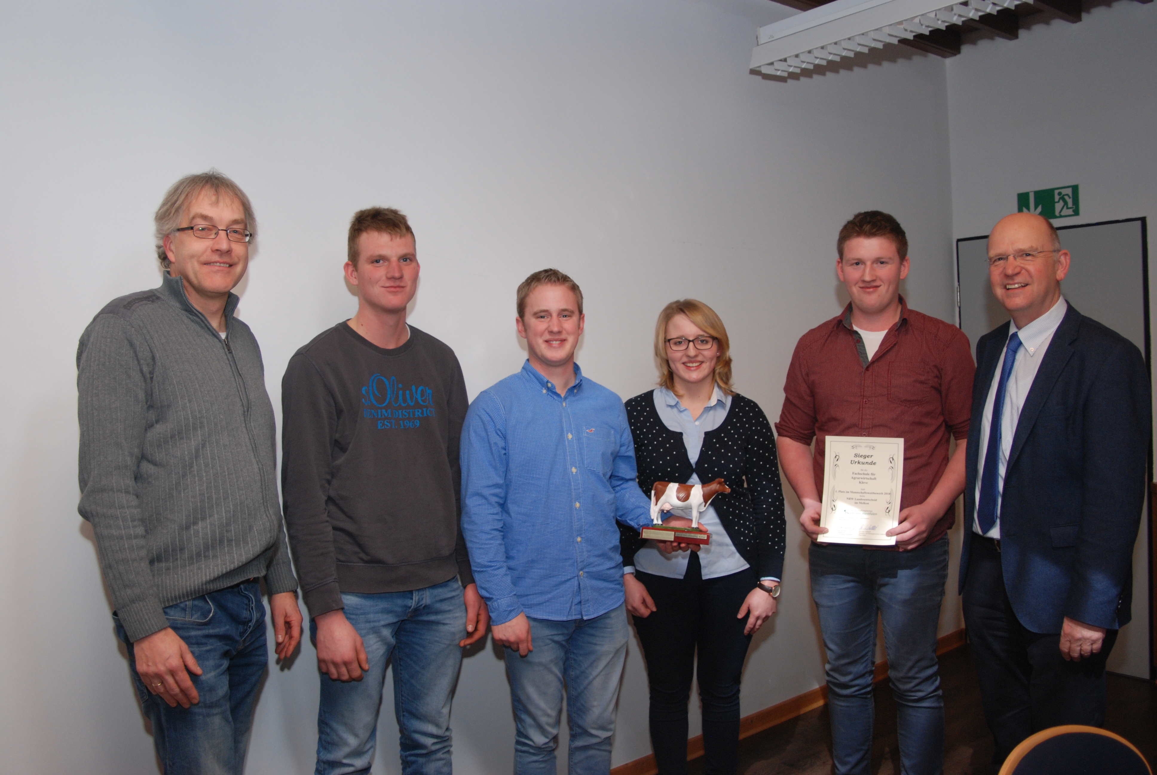 Bereits zum siebten Mal wurde der NRW-Mannschaftswettbewerb im Melken ausgetragen. Die Fachschulen der Landwirtschaftskammer Nordrhein-Westfalen Nordrhein-Westfalen haben die besten Melkerinnen und Melker ins Rennen geschickt, um den Wanderpokal für ihre Schule zu gewinnen. Der Wanderpokal geht in diesem Jahr an die Fachschule für Agrarwirtschaft, Fachrichtung Landwirtschaft der Landwirtschaftskammer in Kleve mit dem Team Johannes Raves, Marleen Ruß und Johannes Weyers.