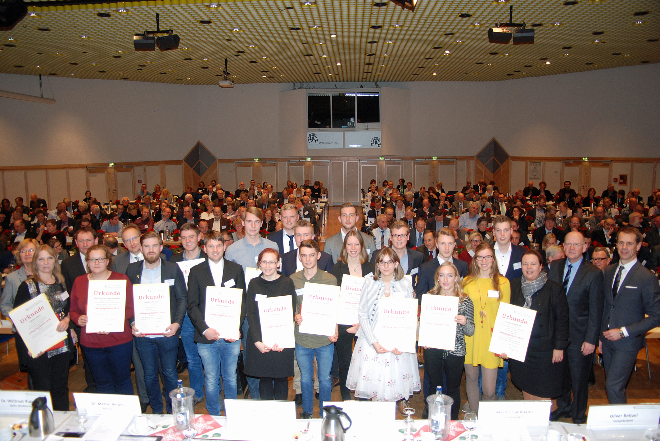 Die Landwirtschaftskammer Nordrhein-Westfalen hat erneut Nachwuchsförderpreise gestiftet, mit denen die jeweils besten Absolventen der Abschlussprüfungen in den grünen Berufen, der Meisterprüfungen sowie der Fachschulen geehrt wurden. Präsident Karl Werring und Nordrhein-Westfalens Landwirtschaftsministerin Ursula Heinen-Esser sowie Kammerdirektor Dr. Martin Berges überreichten die Förderpreise, die mit einer Urkunde und einem Buchgeschenk verbunden sind, am 7. Dezember während der Hauptversammlung der Landwirtschaftskammer in Bad Sassendorf im Kreis Soest. Die Landwirtschaftskammer betreut zurzeit knapp 8 000 Auszubildende und rund 950 Studierende in ihren Fachschulen für Landwirtschaft und Gartenbau.