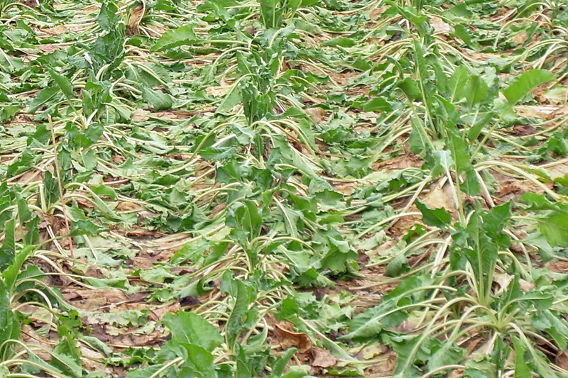 Sorgen machen sich die Landwirte, wenn die Rübenblätter über mehrere Tage schlaff am Boden liegen, denn dann wächst die Rübe nicht weiter. Im schlimmsten Fall können die Blätter absterben. Sobald es regnet, wachsen aber neue Blätter und die Rübe wächst wieder. Das kann aber Ertrag kosten, denn der Zucker, der eigentlich geerntet werden soll, wird dann erst einmal für das Blattwachstum verwendet.