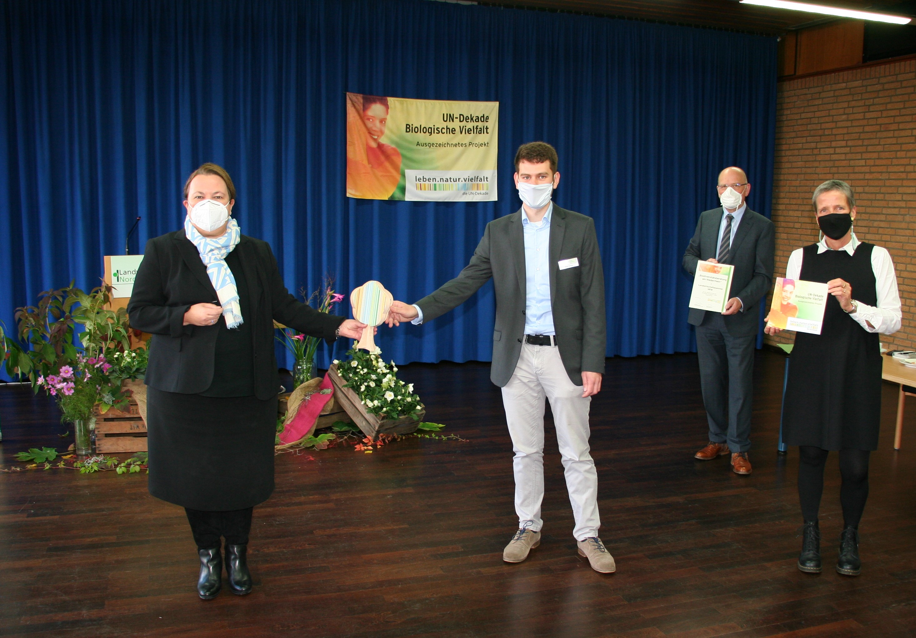 Ministerin Ursula Heinen-Esser: „Der Schutz der biologischen Vielfalt stellt zusammen mit dem Klimawandel die größte ökologische Herausforderung unserer Zeit dar. Oftmals zu Unrecht werden Landwirtschaft und Biodiversität hier als Widerspruch dargestellt. Ich freue mich daher, die Auszeichnung dieses vorbildlichen Projektes gemeinsam mit den Partnern feiern zu können. In diesem Projekt wird das naturschutzfachliche Know-how der Biologischen Stationen und der unteren Naturschutzbehörden mit dem Know-how der Landwirtschaftskammer verknüpft. Basis des Ganzen ist das Vertrauen, das die etwa 500 ansässigen Betriebe in der Region dem Projekt entgegenbringen. Unser Ziel ist es, derartige Best-Practice-Beispiele der Biodiversitätsberatung zu verstetigen und damit die Anzahl und Wirksamkeit der umgesetzten Biodiversitätsmaßnahmen in Nordrhein-Westfalen weiter zu erhöhen.“