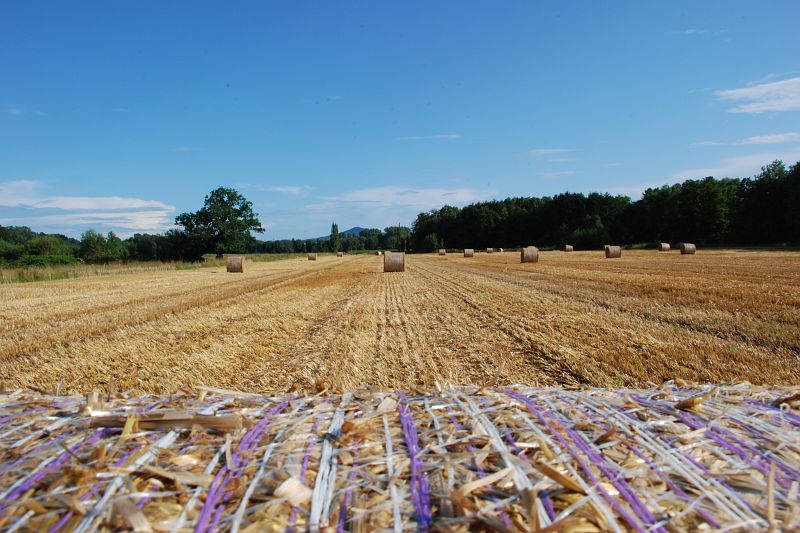 Riesige runde oder eckige Strohballen liegen zurzeit auf vielen Stoppelfeldern in NRW. Ein großes Exemplar kann bis 300 Kilogramm auf die Waage bringen. Die gelben Riesen auf dem Acker helfen den Landwirten Arbeitszeit und Kosten zu sparen, teilt die Landwirtschaftskammer Nordrhein-Westfalen mit.