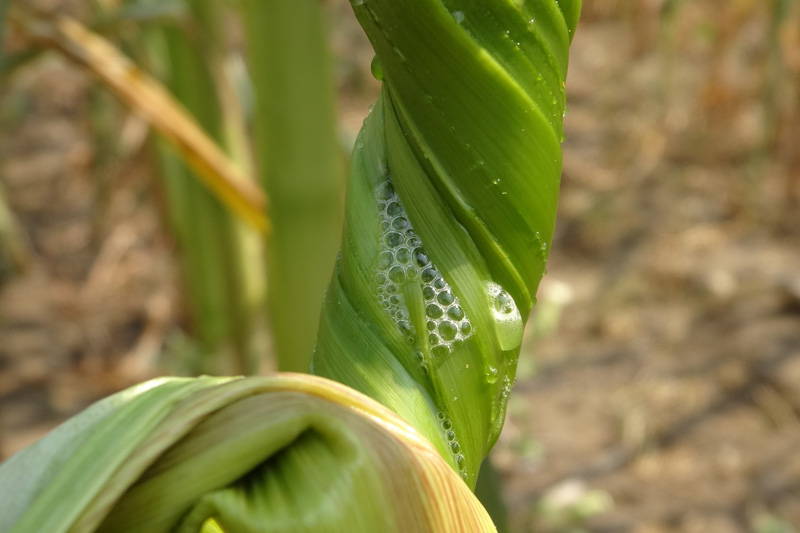Während die Landwirtschaftskammer den Mais im Labor untersucht, kann man auch im Feld Hinweise auf den Reifezustand der Pflanzen bekommen, wenn man eine Maispflanze auswringt. Tritt nur noch wenig Wasser aus dem Stängel, steht der Ernte nichts mehr im Weg.