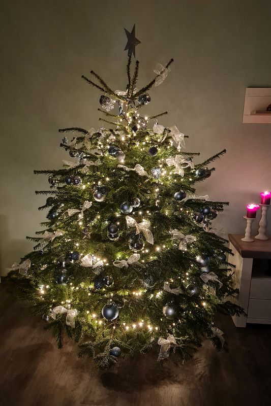 Um lange Freude am Weihnachtsbaum zu haben, sollte beim Kauf auf Frische geachtet werden. Ein frisch geschlagener Baum ist an der weißen Schnittstelle zu erkennen. Bei Bäumen, die schon länger gelegen haben, wird die Schnittstelle grau. Deshalb ein Tipp: Bevor der Baum aufgestellt wird, am besten noch einmal ein Stück von der Schnittstelle absägen, damit der Baum das Wasser besser aufnehmen kann.