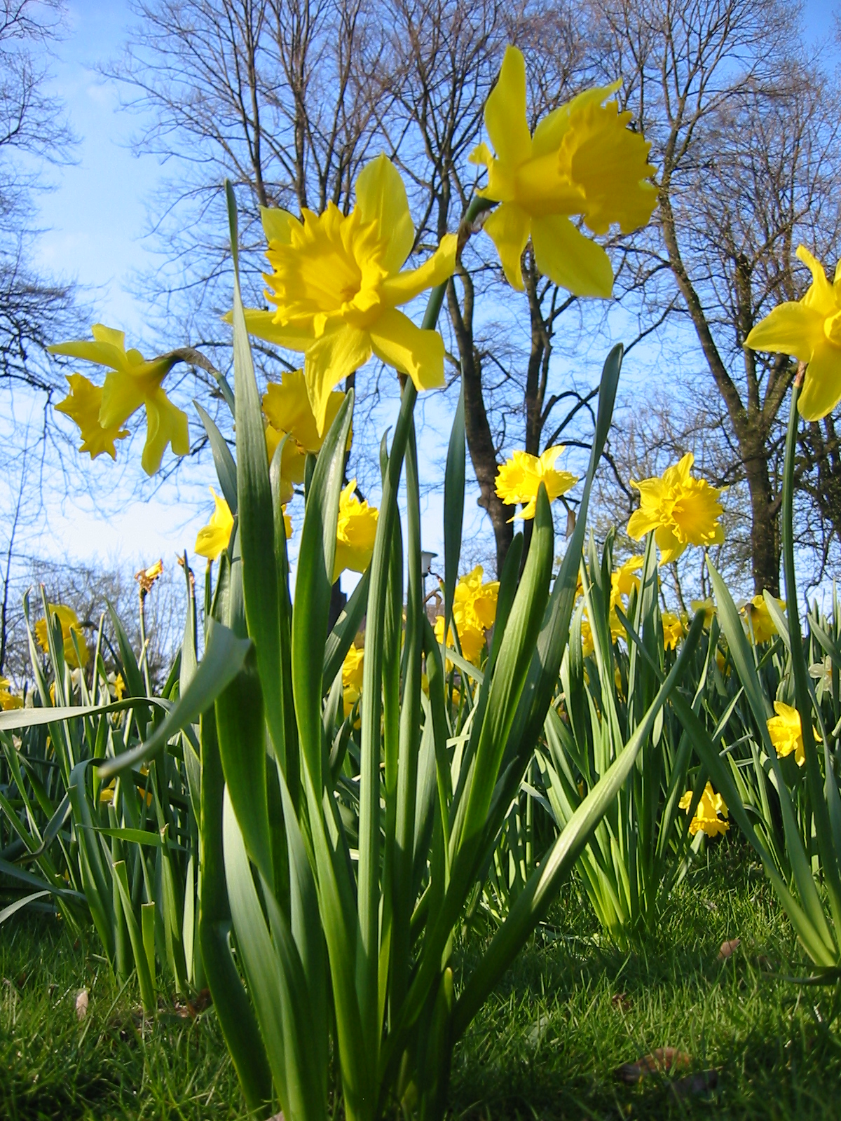 Narzissen vor Bäumen