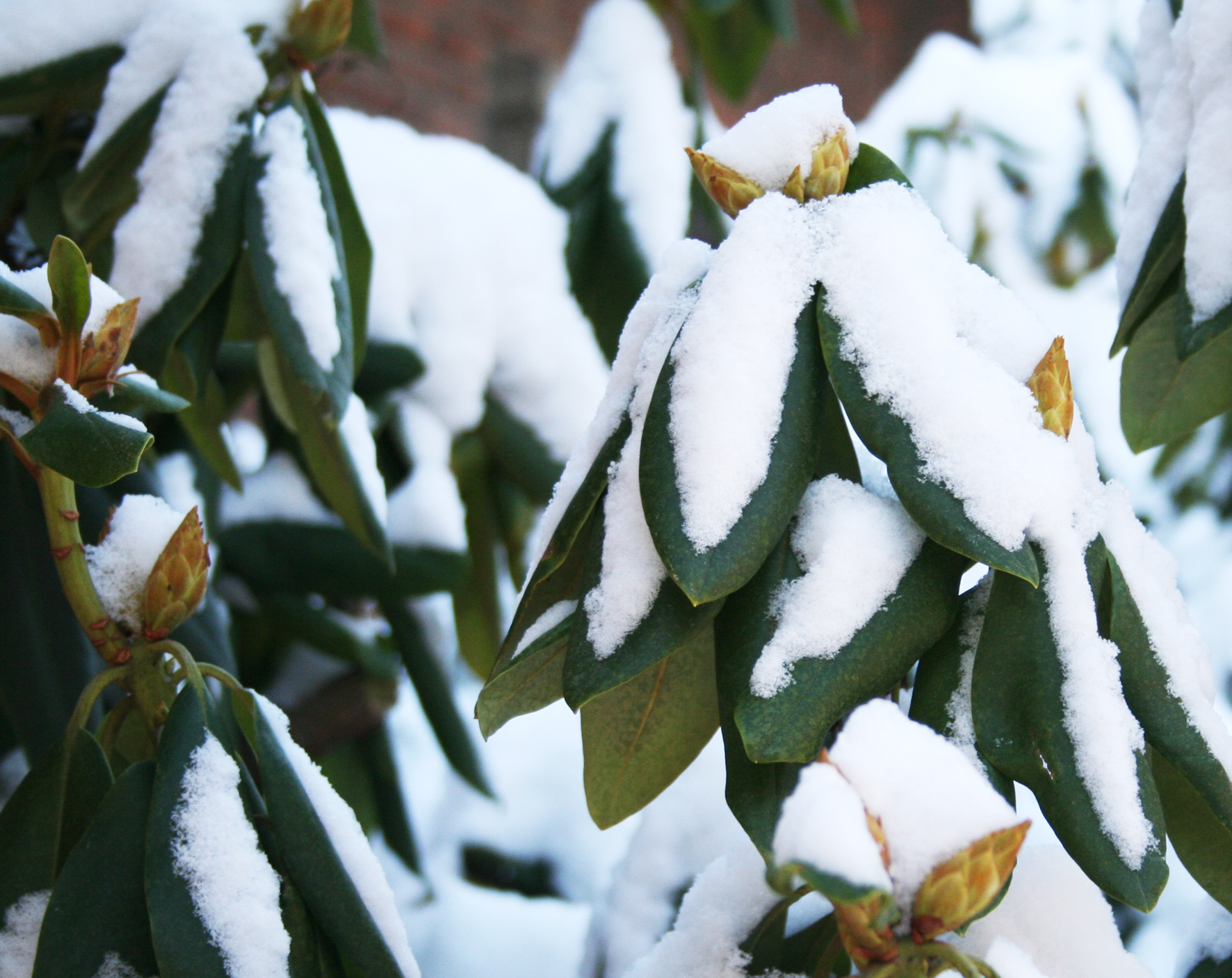 Rhododendron im Schnee