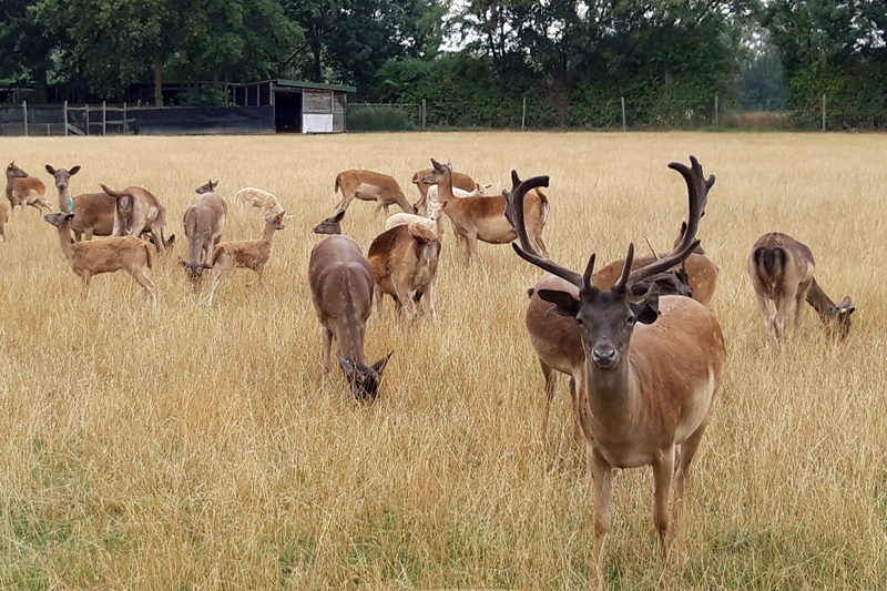 Die Herde von Haus Riswick besteht derzeit aus 22 Muttertieren. Die Kälber werden individuell den jeweiligen Muttertieren zugeordnet und somit wird seit Jahren die Reinzucht aufrechterhalten. Interessierte können sich gern zu den Neumühle-Riswicker-Damhirschen informieren oder sich für Verkaufstiere vormerken lassen.