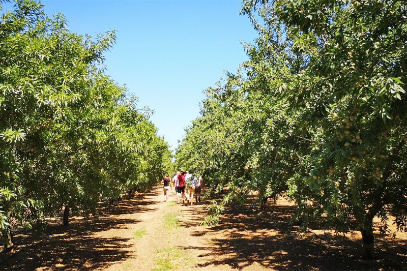 Damit die wissenschaftliche Seite der Landwirtschaft auf der Tour nicht zu kurz kam, wurde neben einem von der University of California geführten Reisanbaugebiet noch eine Versuchsfläche mit Mandelbäumen der Firma Yara besichtigt. Die Reisenden hatten das Glück, dass sich zwei leitende Angestellte bei ca. 40°C im Schatten mehrere Stunden Zeit nahmen, um über das Mandelgeschäft der Industrie und den aktuellsten Forschungsgegenständen in diesem Bereich zu berichten. In diesen Stunden des Austausches wurden unter anderem Themen wie die klassische Bodenbearbeitung, verschiedene Bewässerungsstrategien in der Wüste Kaliforniens bis hin zu den neuesten Erfindungen im Bereich des Digital Farmings besprochen. Damit wurde eine sehr breite Palette von landwirtschaftlichen Themen alleine bei diesem Termin in hoher Qualität bedient.
