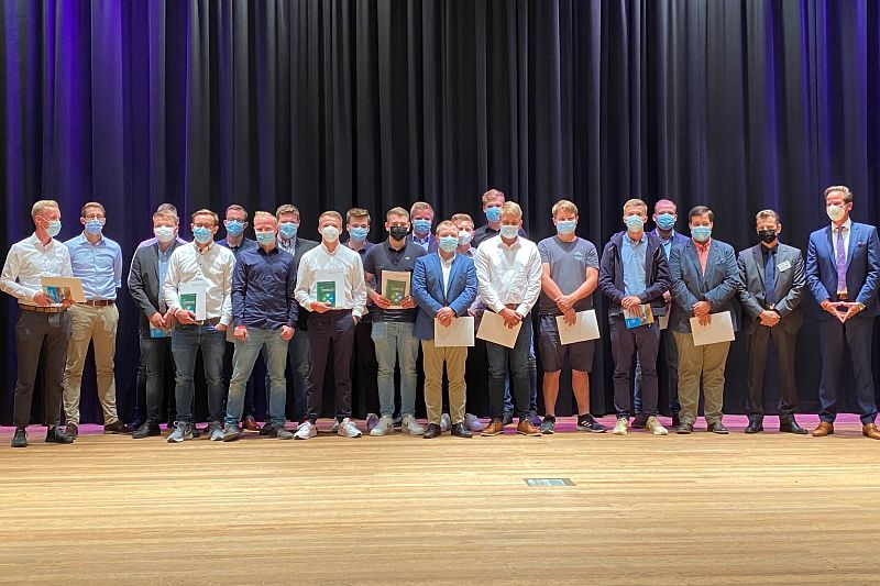 Am 10. September 2021 hat die Kreislandwirtin des Kreises Kleve, Frau Bärbel Buschhaus, zusammen mit dem Geschäftsführer des Bundesverbandes der Lohnunternehmer e.V., Herrn Dr. Martin Wesenberg und dem Präsidenten des Landesverbandes der Lohnunternehmer NRW e.V., Herrn Erwin Schlütter, im Gocher Kastell 71 Absolventen der Abschlussprüfung Fachkraft Agrarservice sowie 14 Absolventen der Meisterprüfung Fachkraft Agrarservice losgesprochen und für ihre Leistungen geehrt.