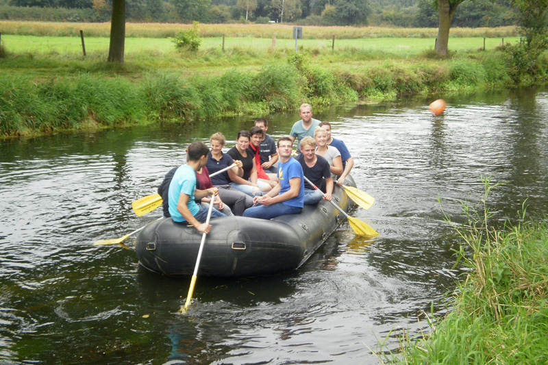 Zunächst ging es nach Losentscheid parallel auf drei unterschiedliche Milchviehbetriebe im Umkreis von Goch. Ob Melkarussell oder Roboter, ob mit oder ohne Weide, jeder Betrieb hat seine Schwerpunkte und nach zwei spannenden Stunden trafen sich alle vier landwirtschaftlichen Klassen in Goch an der Anlegestelle zum Paddeln. Und damit sich auch hier Fachschüler des konventionellen und des ökologischen Schwerpunkt untereinander mischen, erfolgte auch hier die Zuteilung auf die Boote nach Losentscheid.