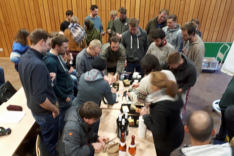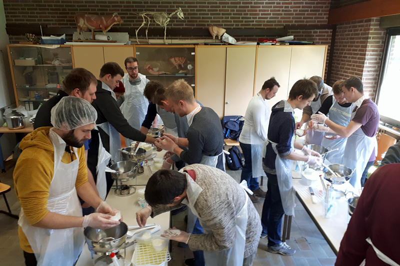 In vielen Bio-Betrieben wird die Milch der Kühe sowie der Schafe und Ziegen auf dem eigenen Hof verarbeitet, um die Wertschöpfung zu erhöhen. Daher bieten wir unseren Studierenden alle zwei Jahre einen Kurs an, bei dem sie Theorie und Praxis der Milchverarbeitung kennenlernen. Dabei konnten die Studierenden u.a. Joghurt und Käse herstellen und mit Hilfe von Abklatschproben die Hygiene überprüfen. Im Theorieteil erfuhren die Studierenden vieles über die Einrichtung und die Ökonomie einer Hofkäserei. Eine Käseverkostung rundete den viertägigen Kurs ab, den wir seit vielen Jahren mit Referenten und Referentinnen des Verbandes für handwerkliche Milchverarbeitung durchführen.