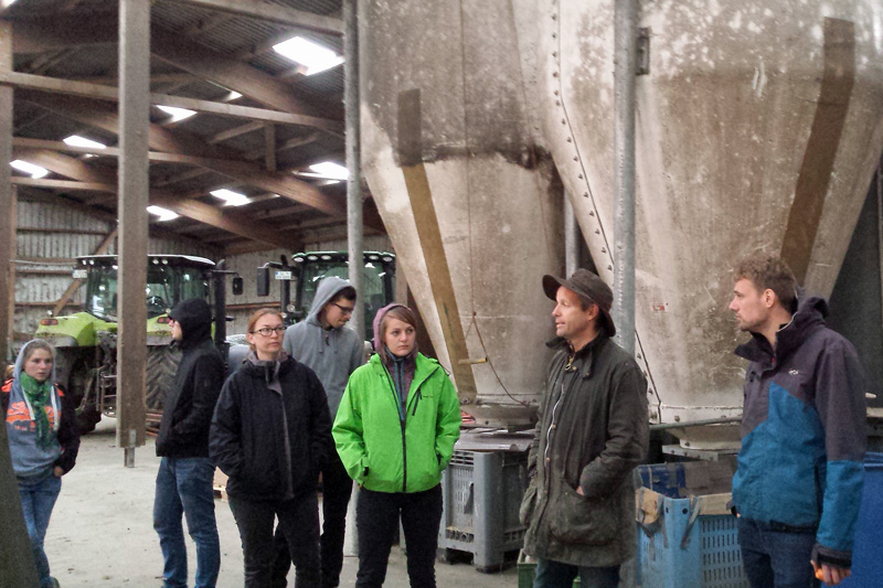 Alle Klassen der Ökoschule machten sich auf den Weg nach Norddeutschland um dort interessante Betriebe anzuschauen. Dabei waren unter anderem auch Betriebe von aktuellen und ehemaligen Öko-Schülern. Manche Betriebe konnten auf Jahrzehnte währende Erfahrungen im Ökolandbau zurückblicken, ein Betrieb wurde von ehemaligen Schülern aus Kleve neu gegründet. Die Ausrichtung der Betriebe war eine gelungene Mischung: Milchvieh, Jungvieh, Sauen, Mastschweine, Legehennen, Schafe, Wasserbüffel, Grünland, Leguminosen der verschiedensten Art, Getreide, Mais, Obst- und Gemüseanbau (Kartoffeln incl. Kartoffelzüchtung, Möhren, Zwiebeln, Tomaten, Kohl, Rhabarber, Erdbeeren, Heidelbeeren usw.). Insbesondere die Vermarktung spielte eine wichtige Rolle. Folgerichtig wurden auch Betriebe besichtigt, die in der Weiterverarbeitung der Produkte der Urproduktion aktiv sind - ob Metzgerei, Mühle, Bäcker oder Milchverarbeitung. Verschiedene Vertriebswege konnten studiert werden.