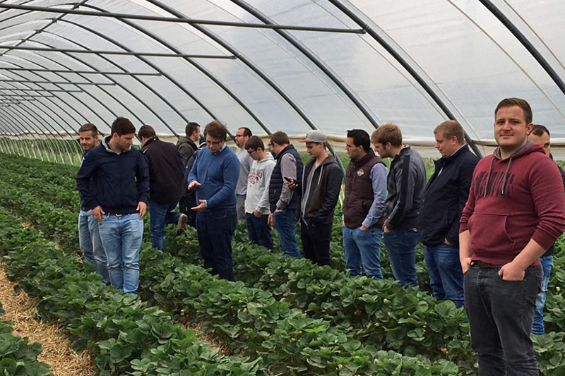 Am 19. Mai 2017 besuchte die OI den Betrieb Croon. Thomas Croon erläuterte die Besonderheiten des geschützten Anbaus bei Erdbeeren.