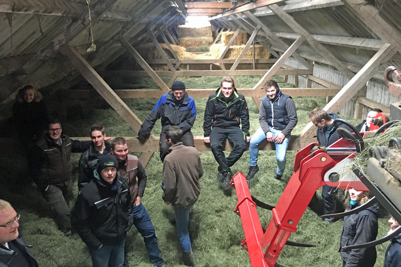 Danach ging es weiter mit einer Grünlandbegehung bei Familie Steffens, unterstützt durch den Berater der Landwirtschaftskammer Hubert Kivelitz. Bei der anschließenden Hofbesichtigung waren schließlich alle begeistert von den individuellen Lösungsansätzen „Geht nicht, gibt`s nicht!“ und vom universell einsetzbaren Baggerlader.