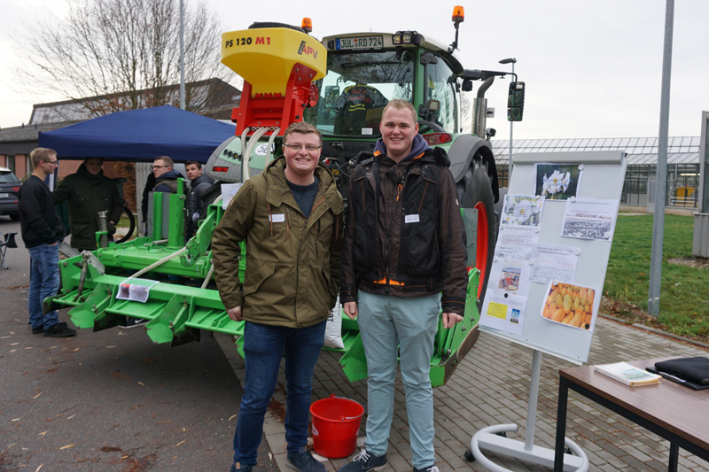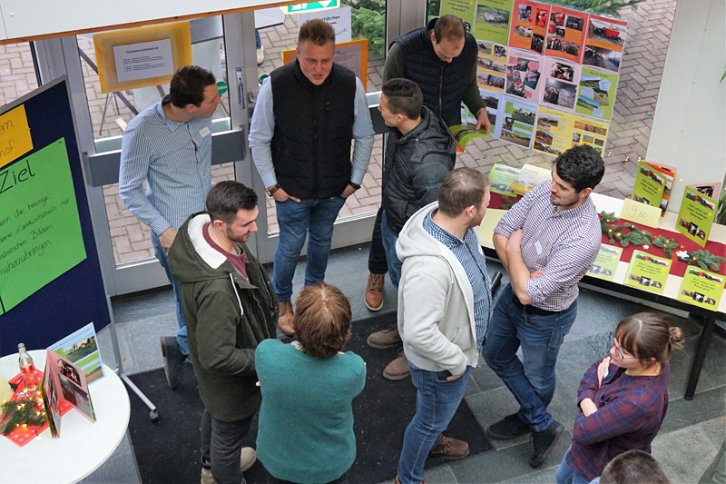 In den Klassenräumen wurden zu landwirtschaftlichen Themen Fachvorträge gehalten. Hierbei zeigte sich die Vielfalt der Themen, mit denen sich die Studierenden beschäftigen und wie breit aufgestellt ihre Ausbildung zum staatlich anerkannten Agrarbetriebswirt ist. So konnten sich die Besucher über Produktionstechnik im Pflanzenbau ebenso informieren, wie über die CO2-Bilanz im Ackerbau und oder die Wärmenutzung von Biogasanlagen durch Jungpflanzenaufzucht.