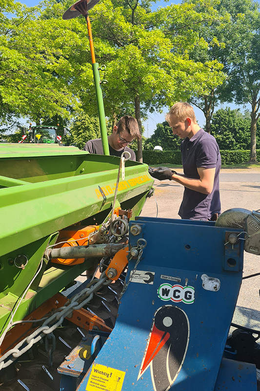 Beliebte Ausbildungssituationen für die praktische Unterweisung sind beispielsweise das Abdrehen der Sämaschine, Reifen wechseln, der Umgang mit Gefahrstoffen oder das Scheren einer Kuh.