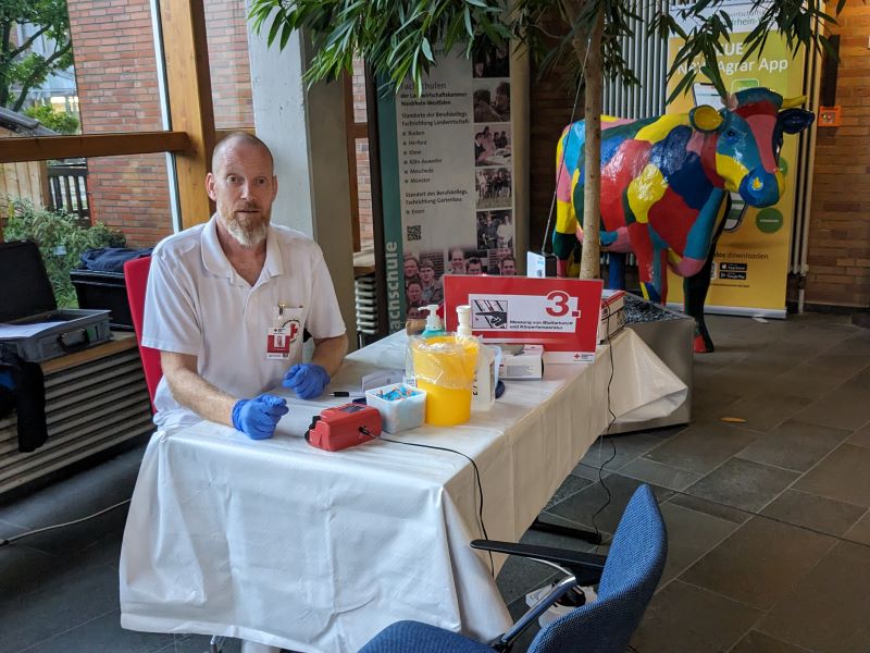An diesem Dienstagmorgen war einiges anders an der Schule – das DRK Münster führte wieder den Blutspendetag an der Fachschule durch.