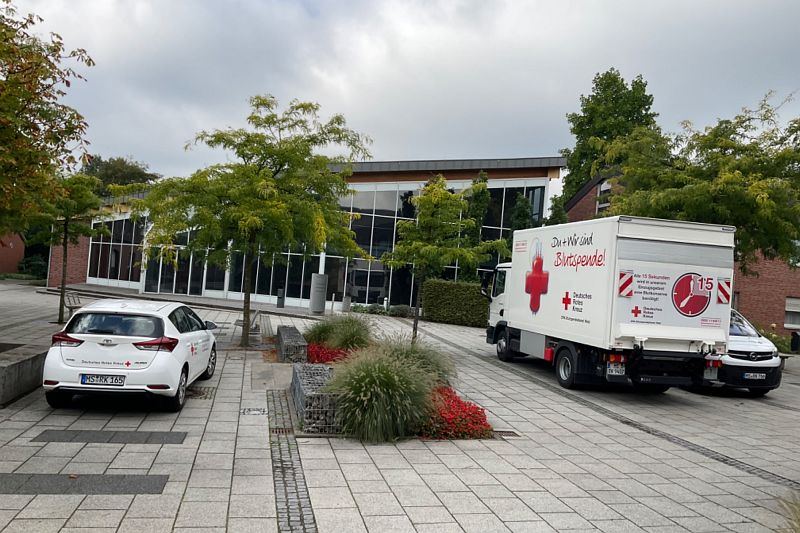 Diesen Morgen war alles anders der Schule. Als die Studierenden eintrafen, standen die Fahrzeuge des DRK auf dem Schulhof und die Stationen für das Blutspenden wurden in der Fachschule aufgebaut.
