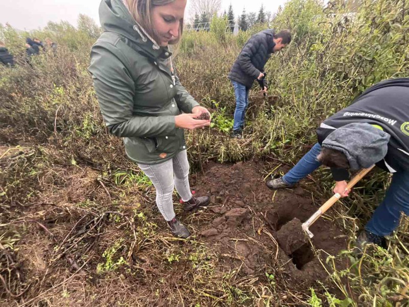Die einzelnen Gruppen der Studierenden untersuchten nun die Dichtlagerung des Bodens, die Wurzel- und die Pflanzenentwicklung, um mögliche Bearbeitungsfehler auf der Fläche zu erkennen.