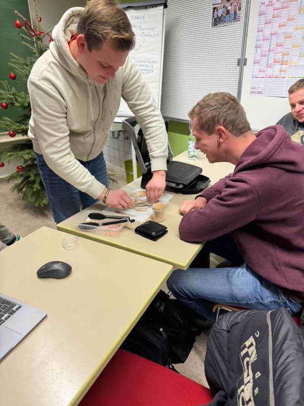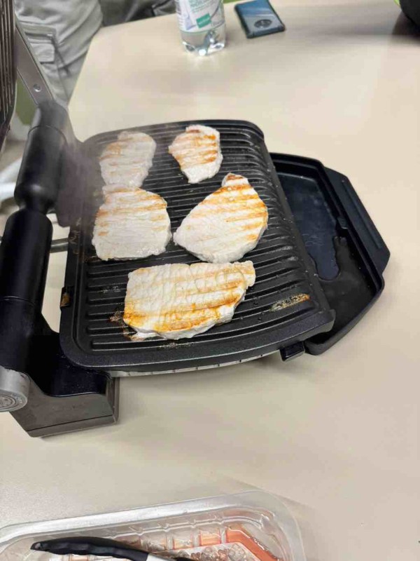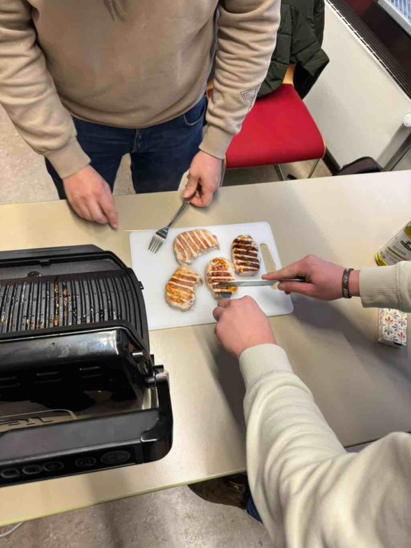 Damit sich die Studierenden einen eigenen Eindruck über den Genusswert von Schweinefleisch verschiedener Genetiken machen konnten, wurde eine Verköstigung durch die Studierenden geplant. Dabei wurde die Herkunft des Fleisches (konventionelle Schweinezucht und Duroc) festgelegt und die Zubereitung geplant. Um eine möglichst große Vergleichbarkeit zu gewährleisten, brachten zwei Studierende identische Tischgrille mit.