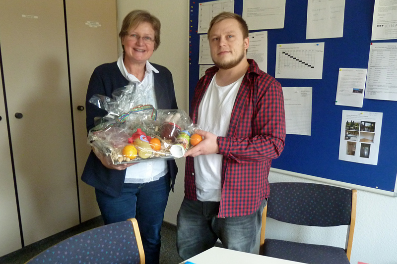 Am Ende des Praktikumswurde Robert Paulitsch mit herzlichem Dank und einem Präsentkorb verabschiedet. Dieser war mit regionalen Produkten aus landwirtschaftlicher Erzeugung gefüllt und von einem Studierenden der Fachschule geliefert worden. Alles echt – nicht gefaked!