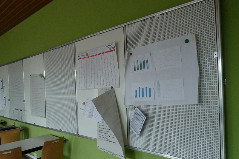 Die Zeit des Lockdowns konnte für die Verbesserung der schulischen Rahmenbedingungen gut genutzt werden. So wurden die Klassenräume grundgereinigt und mit freundlichen Farbanstrichen versehen. Die Akustik wurde in den Klassenräumen, in denen dies noch nicht geschehen war, durch Einbau von Schallschutzelementen verbessert und neue Stromleitungen wurden verlegt. Auch an der Ausstattung der Räume wurden wesentliche Änderungen vorgenommen. So wurden die „klassischen“ Lehrerpulte demontiert und nur für scharfe Augen sind die Stellen auf dem Fußboden auszumachen, an denen die Pulte jahrzehntelang gestanden und wo die Kabel für die Stromversorgung gelegen hatten. Es wird sich künftig erweisen, dass Unterricht auch ohne fest installierte Lehrerpulte funktionieren kann. Stattdessen wurden Racks für die Aufnahme der Technik montiert und neues Mobiliar angeschafft, das ein flexibles, mobiles und schülernahes Arbeiten ermöglicht und mehr Bewegungsraum zur Verfügung stellt. Die Schule ist also bestens auf die Zeit nach Beendigung des Lockdowns vorbereitet und kann den Studierenden und den Lehrkräften ein möglichst freundliches und lernförderndes Umfeld bieten.