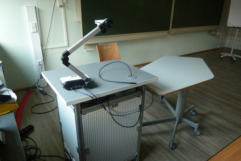 Verbesserungen in den Klassenräumen durch gefälligen Farbanstrich, Einbau von Akustikelementen und Ersatz der Lehrerpulte durch neu angeschaffte Racks und mobile Tische.