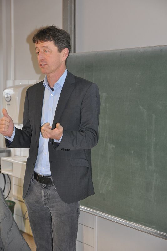 Schnell füllt sich die Aula an der Fachschule – dieser Tag beginnt mit einem Kick-Off Meeting, zu dem der Schulleiter Wolfgang Grab eingeladen hat.