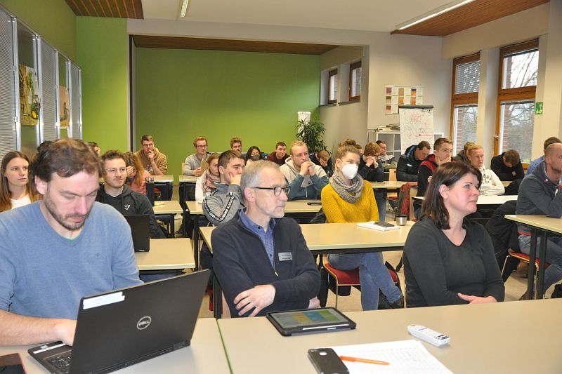 Im Anschluss wählen die Teilnehmenden Vorträge und Workshops individuell aus. Die Studierenden diskutieren mit Kathrin Segbert und Lars Bücker, Berater der LWK für Wasserschutzgebiete und die Umsetzung der Wasserrahmenrichtlinie (WRRL), wie es in den roten und eutrophierten Gebieten mit der landwirtschaftlichen Produktion weitergehen kann. Auch Fragen zur Verfügbarkeit und Nutzung von Wasser in der Zukunft werden aus Sicht der Praxis beleuchtet.