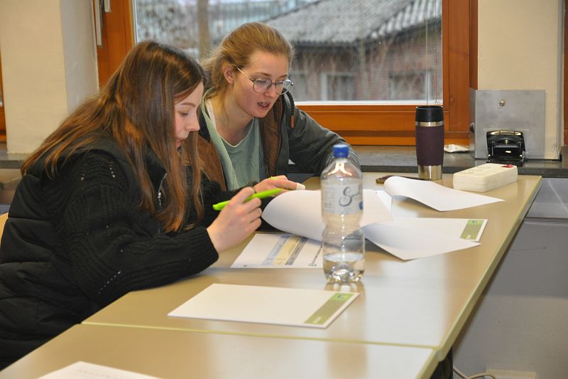 Dies lädt zur anschließenden Diskussion in kleinen Gruppen ein, in denen Studierende der Fachschule, der Uni Münster, Berater und Lehrer sich durchaus kontrovers austauschen.