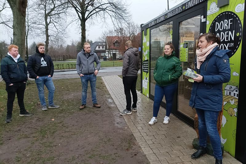 Mit viel Input im Gepäck geht es am zweiten Tag nun raus in die Praxis. Die Sudierenden besuchen in unterschiedlichen Exkursionen Agri-PV- und Biogasanlagen oder eine Klimakommune zur Stromerzeugung. Andere nehmen einen Agroforstbetrieb oder eine Dorfladenbox zur Direktvermarktung unter die Lupe.