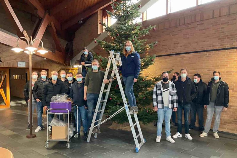 Besonders prächtig fällt in diesem Jahr die stattliche Tanne aus, die das Hausmeisterteam auf dem Versuchsgelände geschlagen und aufgestellt hat.