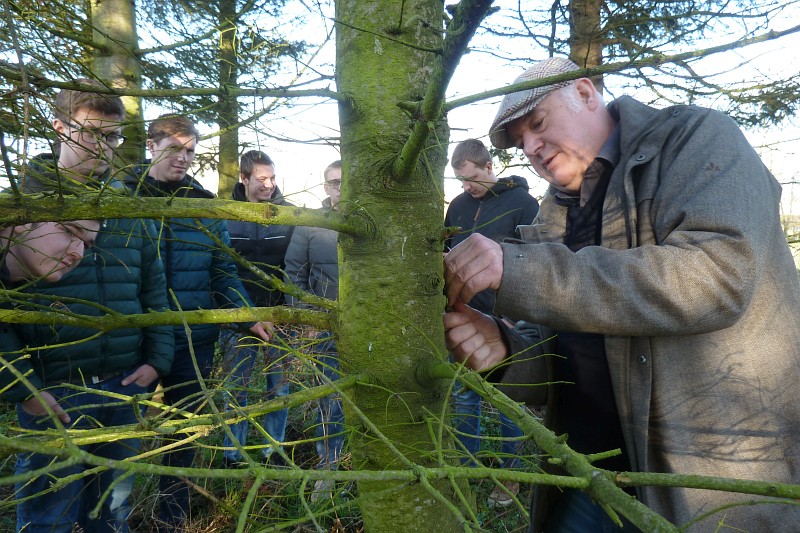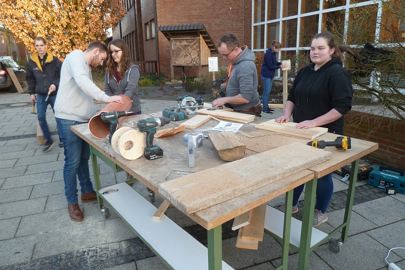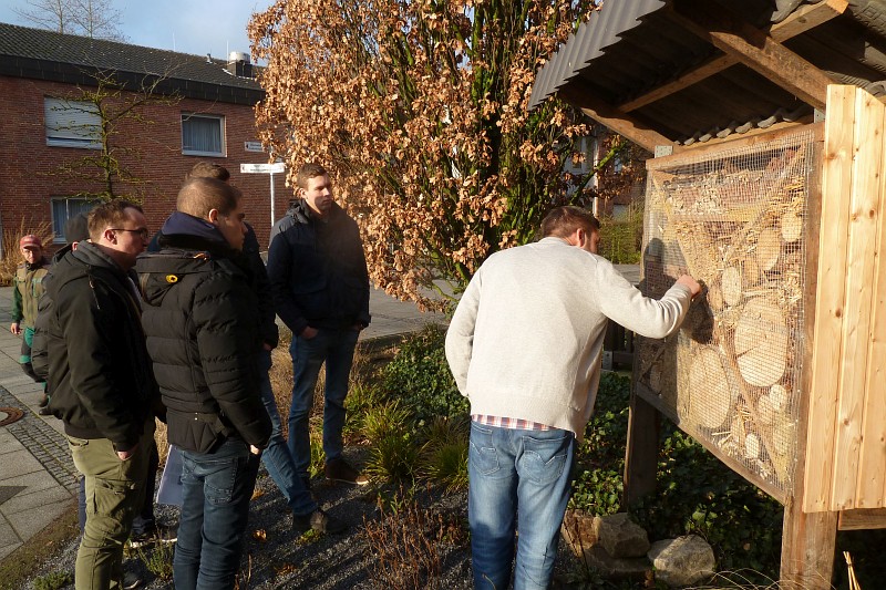 Während beim mehrtägigen Workshop vor den Weihnachtsferien verschiedene Gruppen von Studierenden einzelne Aspekte zum Thema „Klimaschutz“ beleuchteten, gingen andere Gruppen ganz praktisch an das Thema „Artenschutz und Biodiversität“ heran. So wurden die –auch durch die Klimaveränderung verursachten- Schäden im Wald und an Bäumen durch Herrn Voß (Mitarbeiter bei „Wald und Holz NRW“) und Herrn Herrmann (Mitarbeiter im Versuchszentrum der Landwirtschaftskammer NRW) vor Augen geführt.